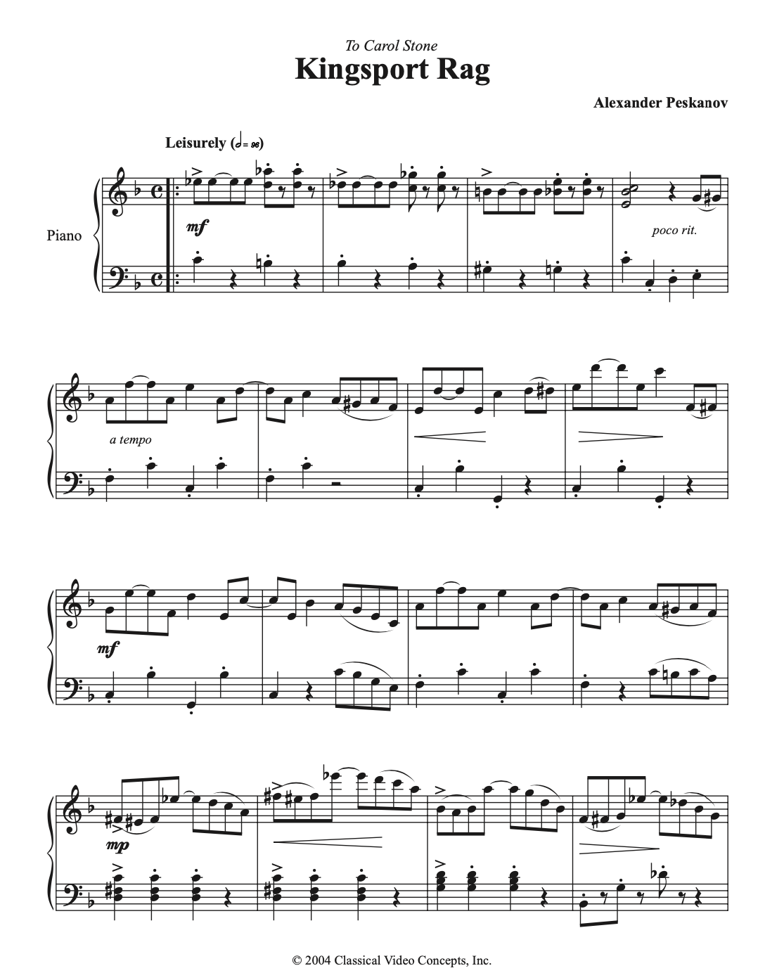 Kingsport Rag $7.95 – $40.00 X Piano solo – $7.95 Piano duet – $9.95 MIDI orchestra – $40.00 Score & Parts – $40.00 Purchase Checkout Added to cart