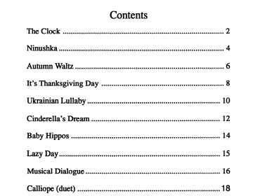 Musical Gallery (Early Elementary) $4.95 – $19.95 X Musical Gallery Early Elementary (Complete) – $19.95 Ninushka – $5.95 Musical Dialogue – $5.95 Lazy Day – $4.95 Baby Hippos – $5.95 The Clock – $5.95 It's Thanksgiving Day – $5.95 Cinderella's Dream – $5.95 Ukrainian Lullaby – $5.95 Autumn Waltz – $5.95 Calliope (4 Hands) – $7.95 Purchase Checkout Added to cart