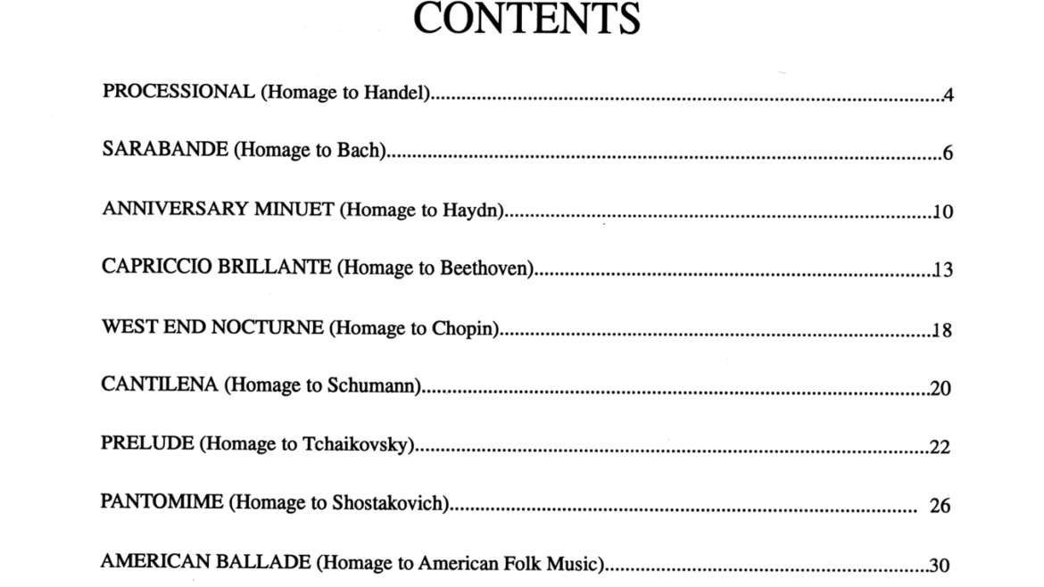 • Processional (Homage to Handel) • Sarabande (Homage to Bach) • Anniversary Minuet (Homage to Haydn)