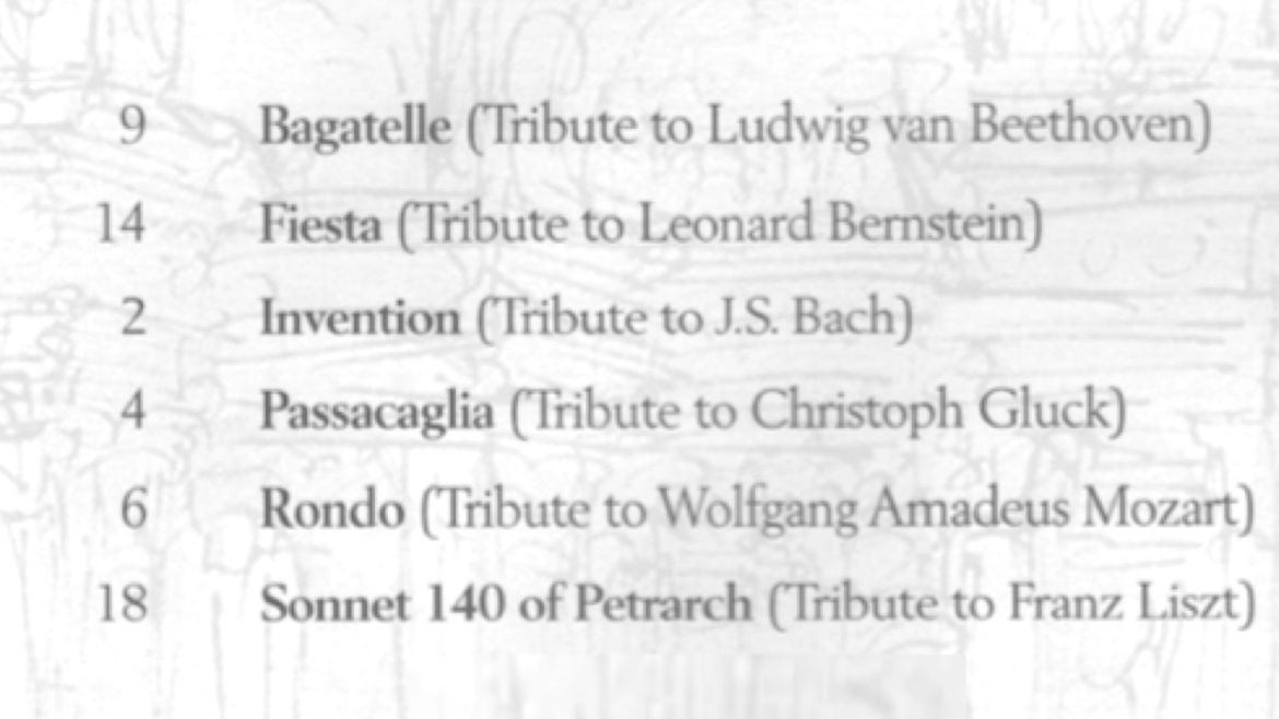 All 6 pieces in Alexander Peskanov collection, “Tribute To The Masters” (Early To Late Intermediate) are true musical gems and wonderful introduction to the works of great composers, including, J. S. Bach, Gluck, Mozart, Beethoven, Liszt and Leonard Bernstein.